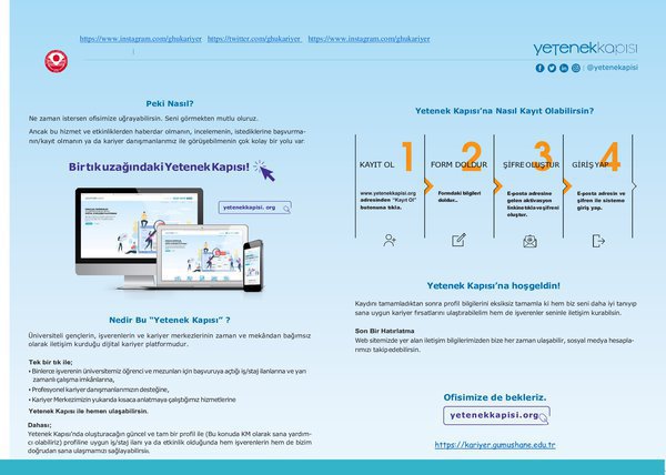 If you want to be informed about the career opportunities that are oriented towards university students and graduates offered by thousands of employers and to benefit from the services offered by the university career center, the right place is Talent Gate. You can have access to job/internship postings, career counseling services, career fairs, events and many others just with a click.