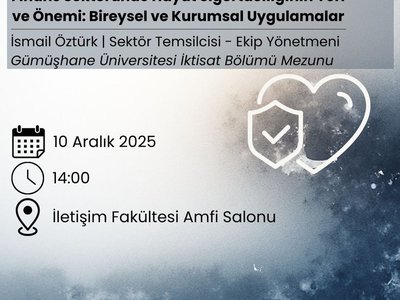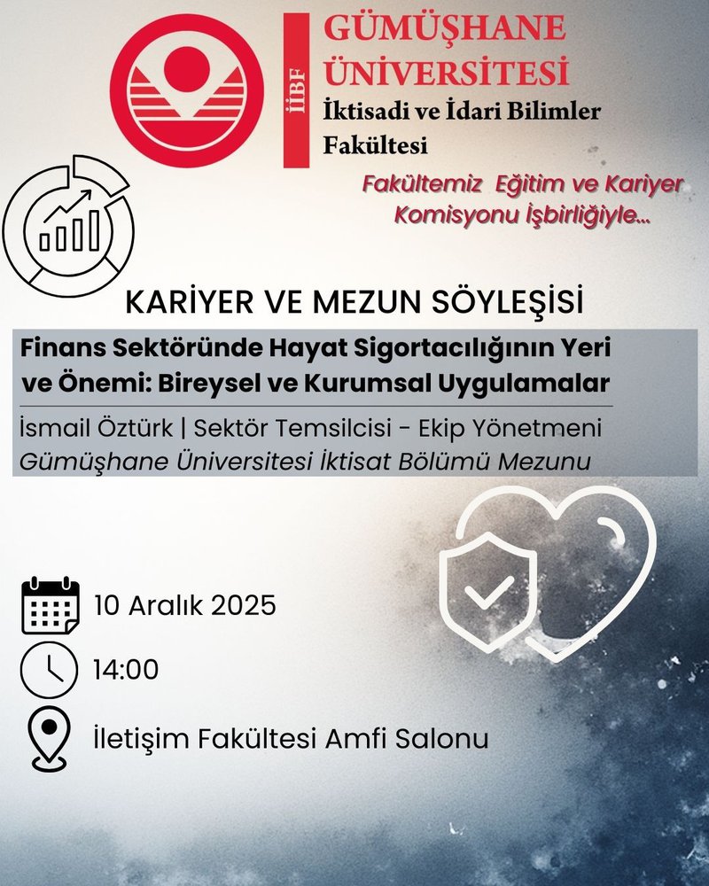 All students are invited to the talk titled "The Place and Importance of Life Insurance in the Financial Sector: Individual and Corporate Applications," organized in collaboration with our faculty's Education and Career Committee. Our talk guest, İsmail Öztürk, a graduate of our faculty's Department of Economics and Team Leader, will share his experiences in the financial sector and current practices in life insurance with our students.